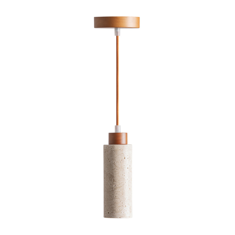 Lampara de Colgar Kaple de estilo Contemporaneo Fabricado en Travertino en Color Beige Combinado Con Madera en Color Marron.