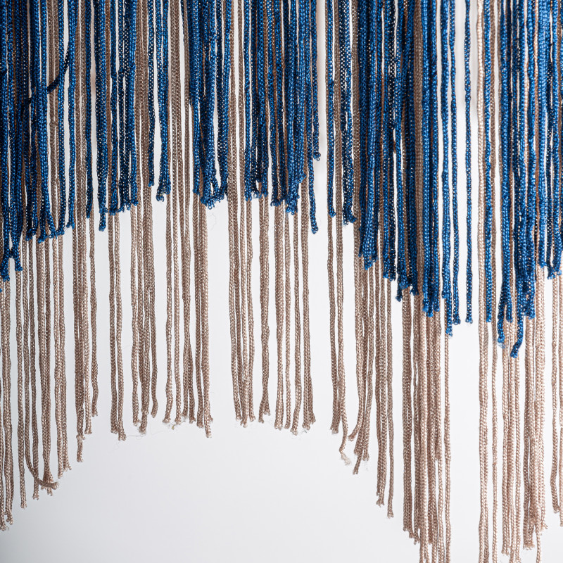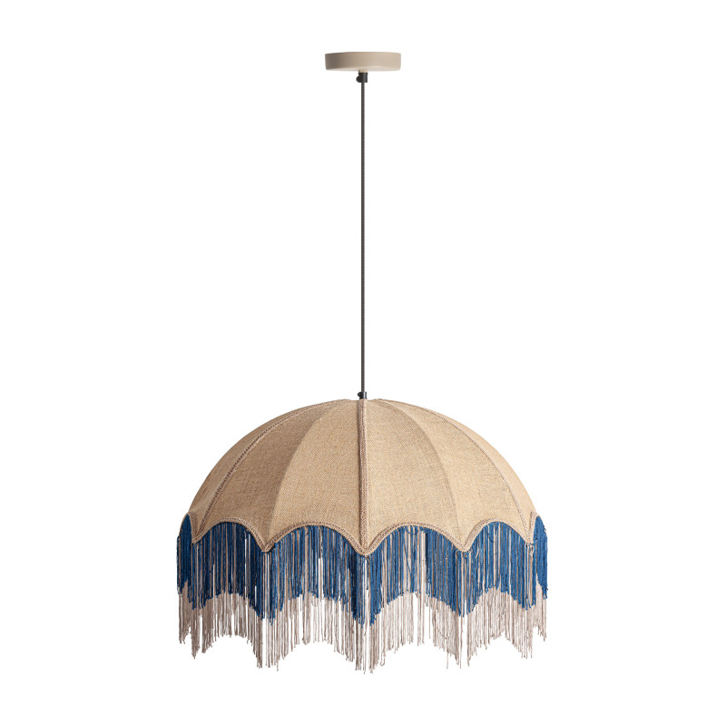 Lampara de Colgar Lashem de estilo Provenzal Fabricado en Yute en Color Beige Combinado Con Acrilico en Color Azul Y Hierro en Color Marron.