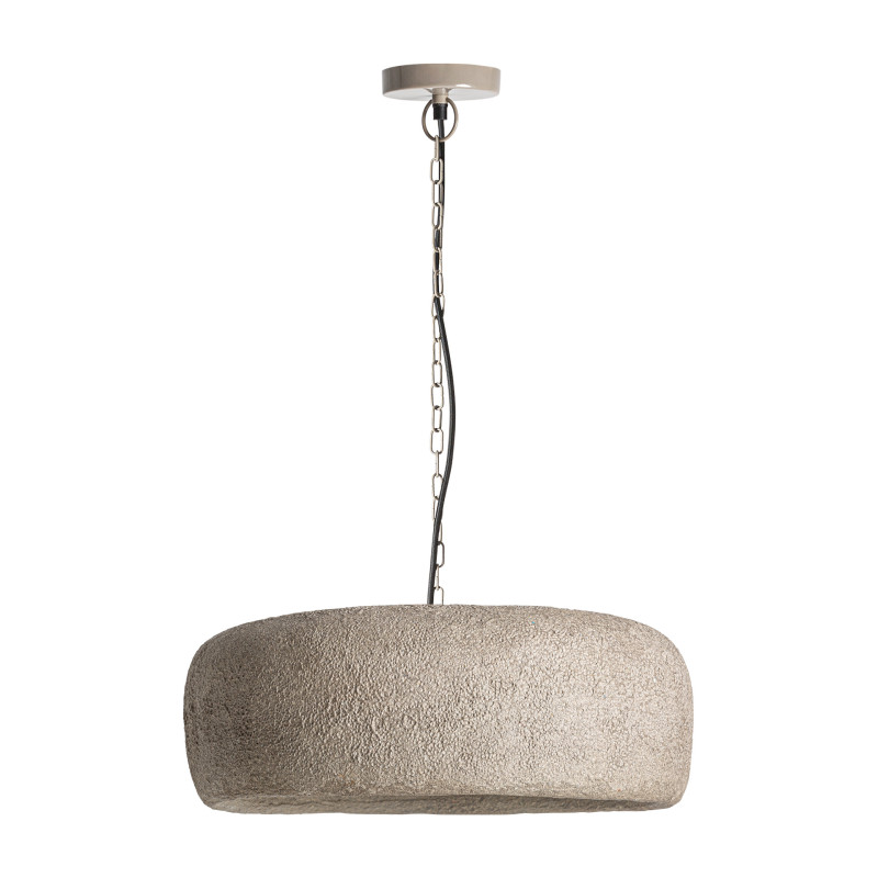 Lampara de Colgar Moonle de estilo Contemporaneo Fabricado en Papel Mache en Color Gris Combinado Con Hierro en Color Negro.