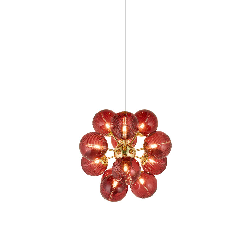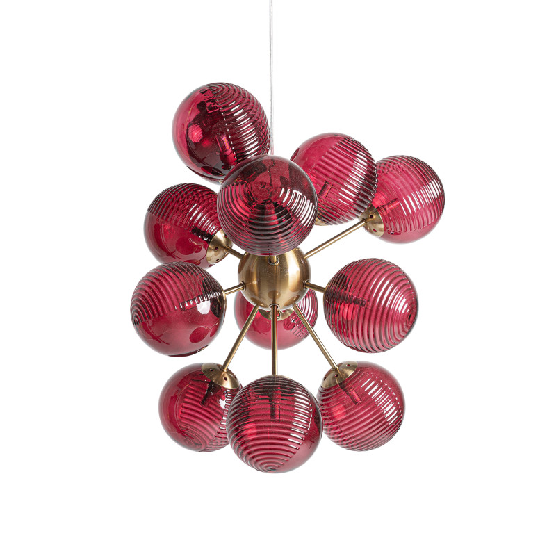 Lampara de Colgar Rubra de estilo Contemporaneo Fabricado en Cristal en Color Rojo Combinado Con Acero en Color Oro. Producto desmontable.