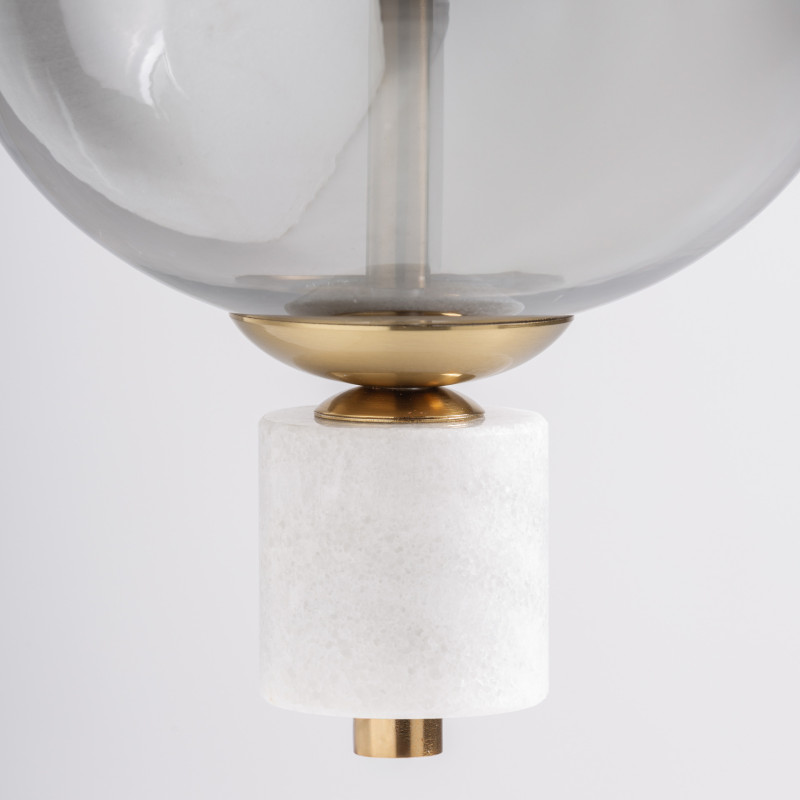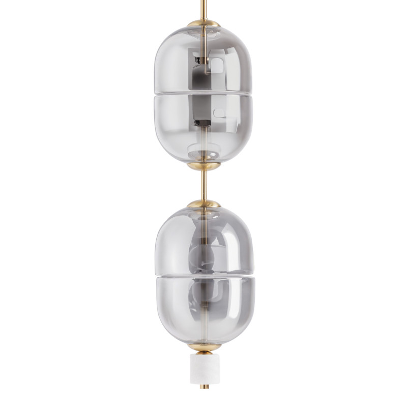 Lampara de Colgar Sahin de estilo Art deco Fabricado en Cristal en Color Gris Con Acabado Ahumado Combinado Con Acero en Color Oro Con Acabado Viejo.