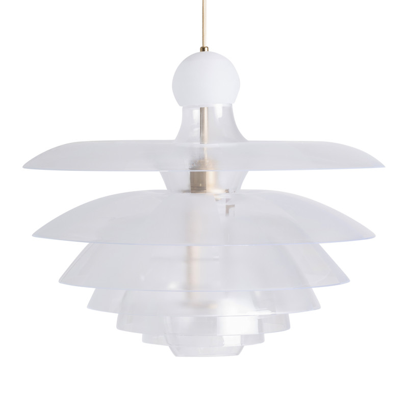 Lampara de Colgar Sasha de estilo Art deco Fabricado en Acrilico en Color Blanco Con Acabado Traslucido Combinado Con Hierro en Color Oro Con Acabado Viejo. Producto desmontable.