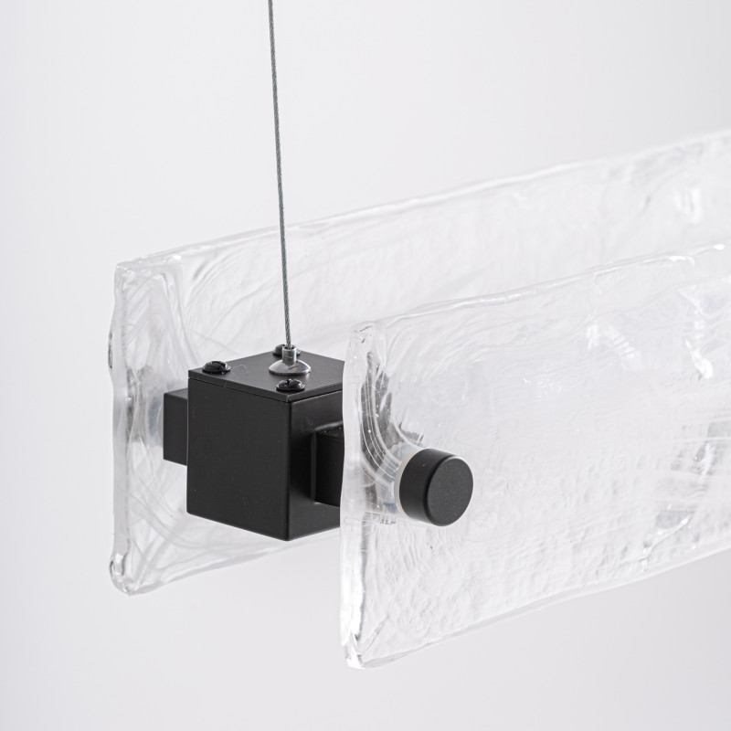 Lampara de Colgar Shalese de estilo Art deco Fabricado en Cristal en Color Blanco Con Acabado Texturizado Combinado Con Acero en Color Negro. Producto desmontable.