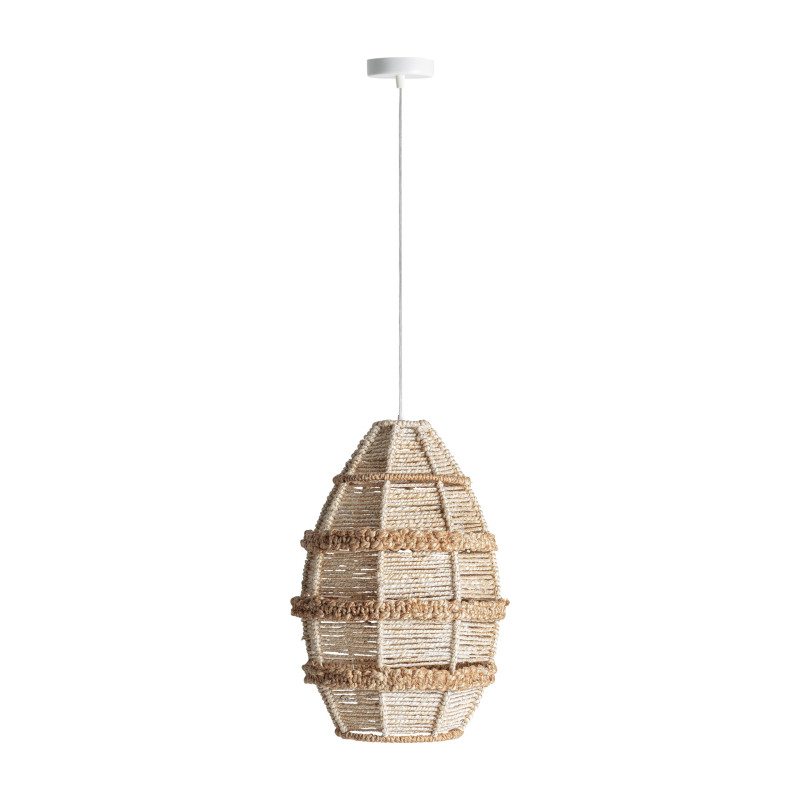 Lampara de Colgar Shanea de estilo Boho Fabricado en Yute en Color Beige en Color Blanco Roto.