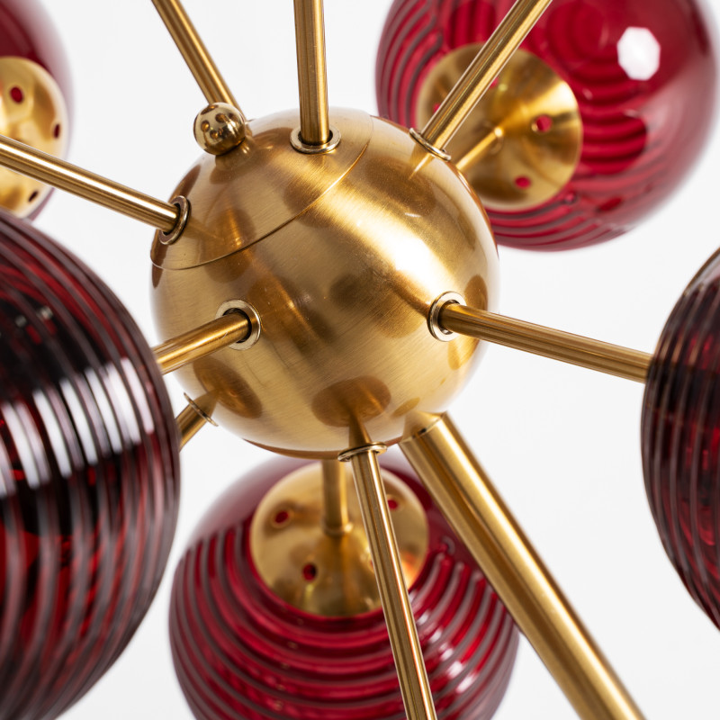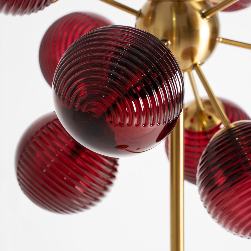 Lampara de Pie Alaia de estilo Art deco Fabricado en Cristal en Color Burdeos Combinado Con Hierro en Color Oro. Producto desmontable.