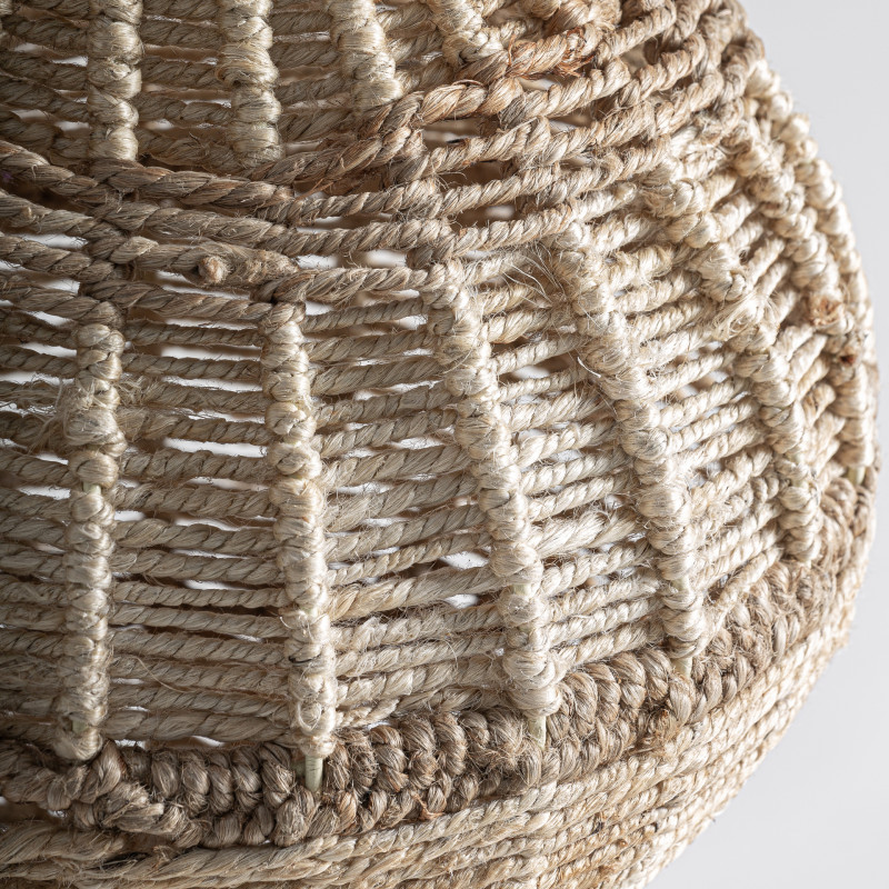 Lampara de Pie Jalhe de estilo Boho Fabricado en Yute en Color Blanco Roto en Color Marron.