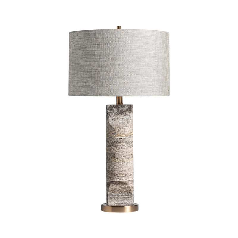 Lampara de Sobremesa Helios de estilo Art deco Fabricado en Marmol en Color Gris Combinado Con Hierro en Color Oro Y Poliester en Color Gris. Producto desmontable.