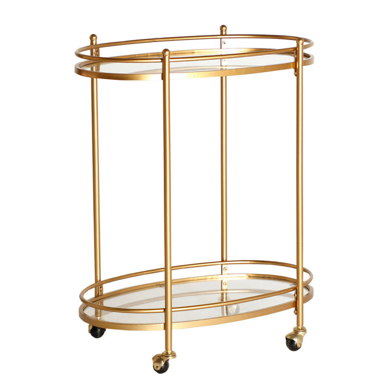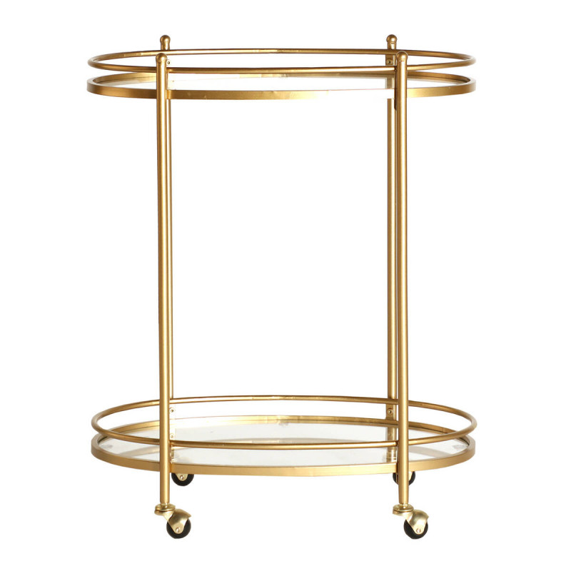 Camarera bleg, en color oro, de estilo art deco. Fabricado en hierro, combinado con vidrio. Producto desmontable.