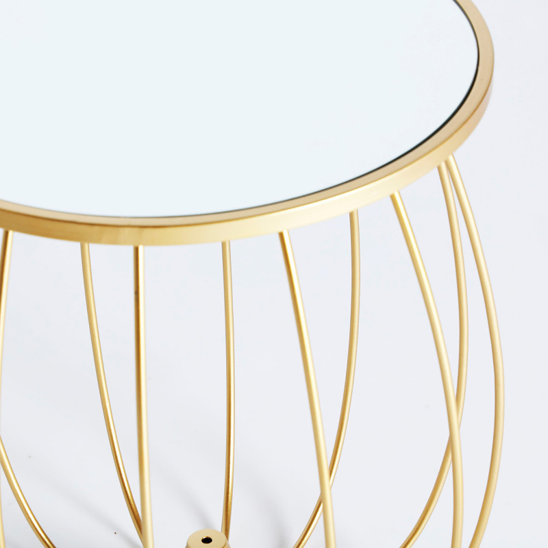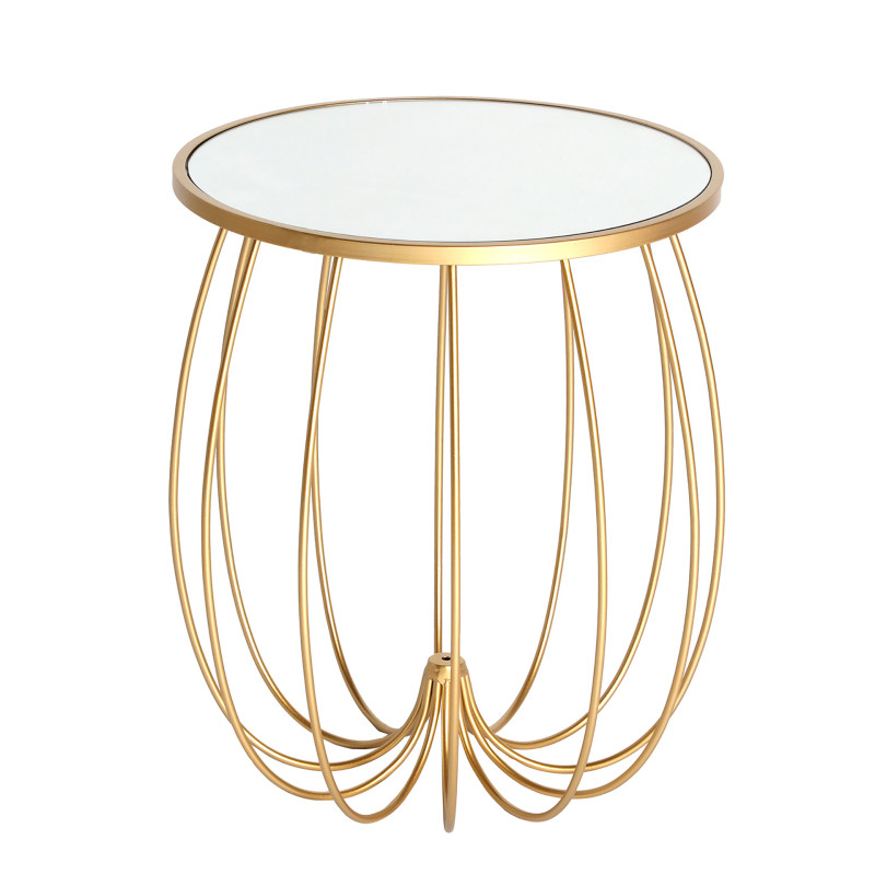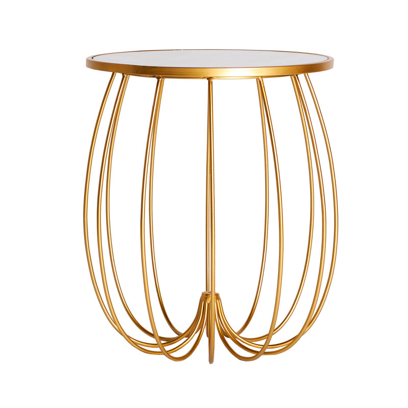 Mesa auxiliar belitsa, en color oro, de estilo art deco. Fabricado en hierro, combinado con espejo.
