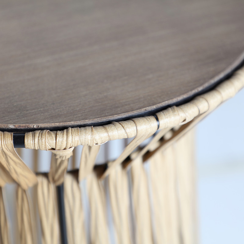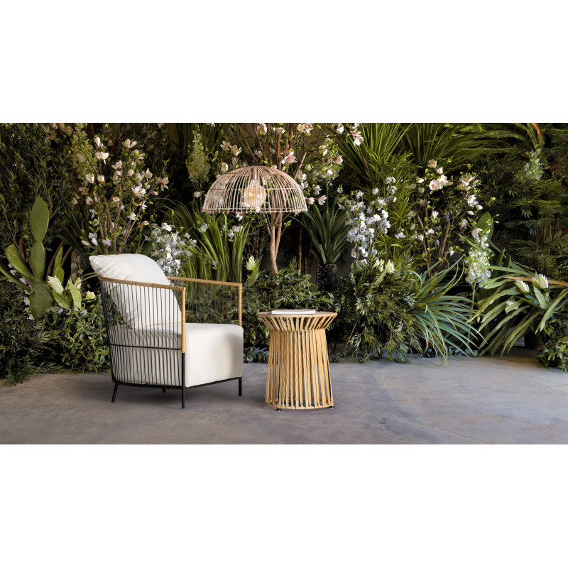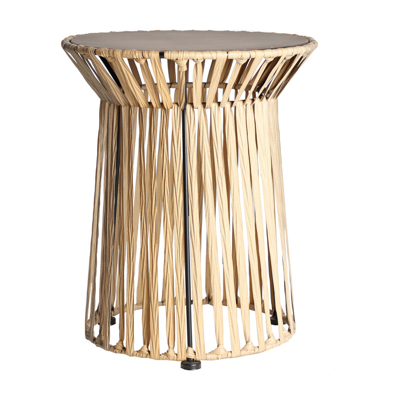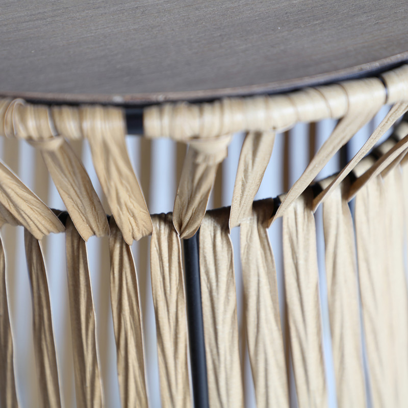 Mesa auxiliar meze, en color natural, de estilo contemporaneo. Fabricado en ratan, combinado con hierro.