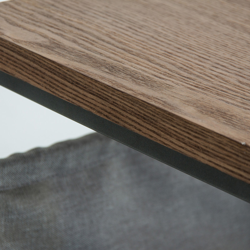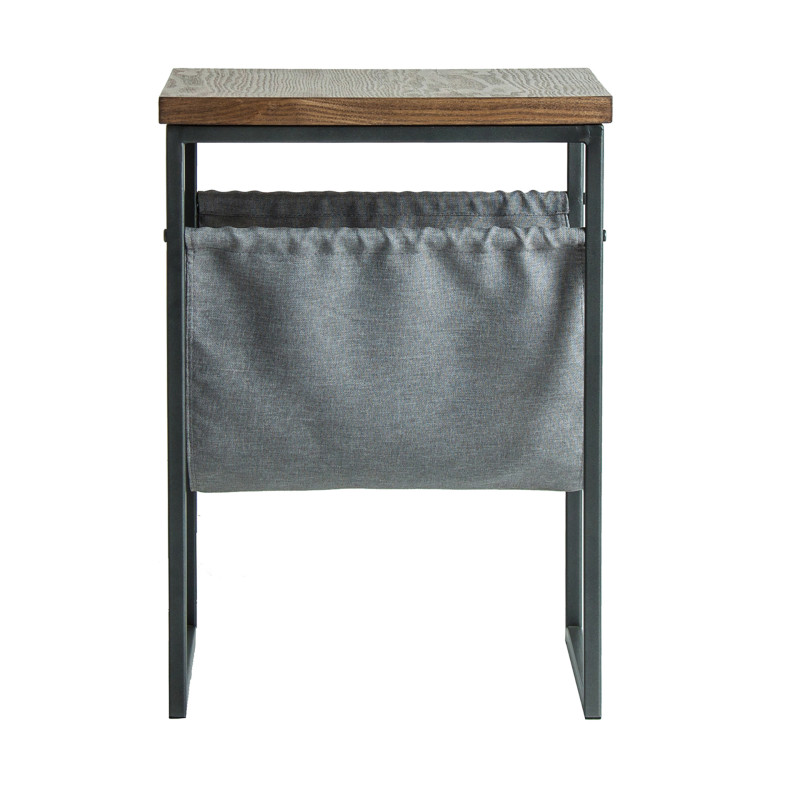 Mesa auxiliar olean, en color gris/natural, de estilo industrial. Fabricado en hierro, combinado con madera contrachapada y loneta.