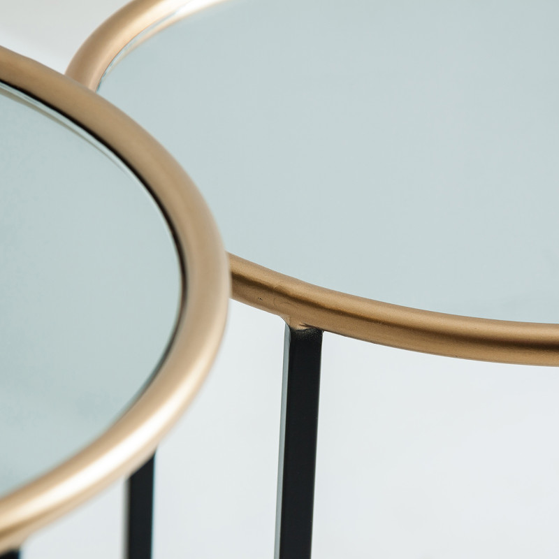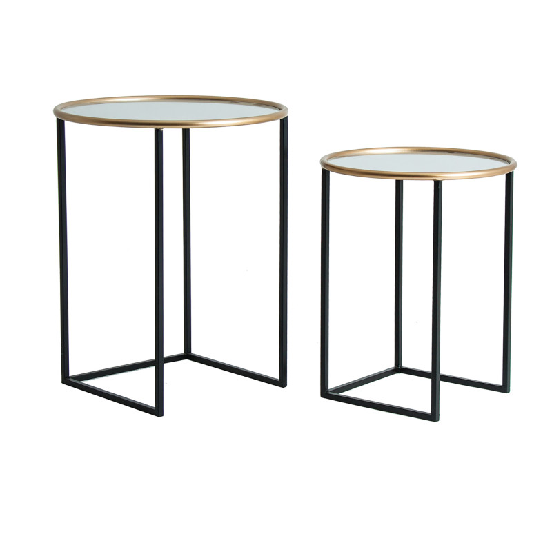 Mesa Auxiliar set 2, en color Negro/Oro, de Estilo Art Deco.Fabricado en Hierro, Combinado Con Espejo.
