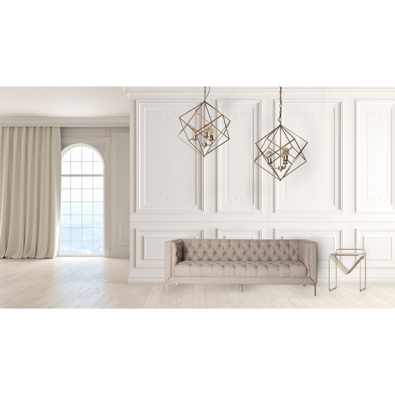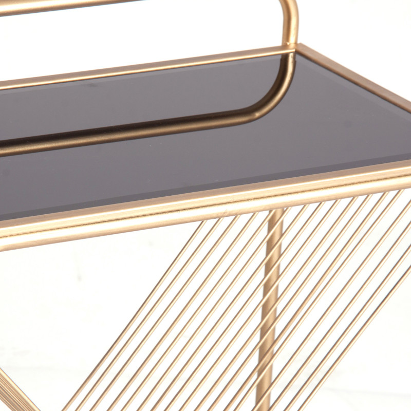 Mesa auxiliar wohlen, en color negro/oro, de estilo art deco. Fabricado en hierro, combinado con vidrio.