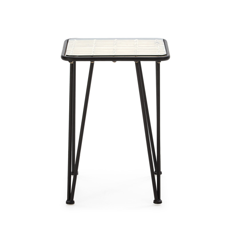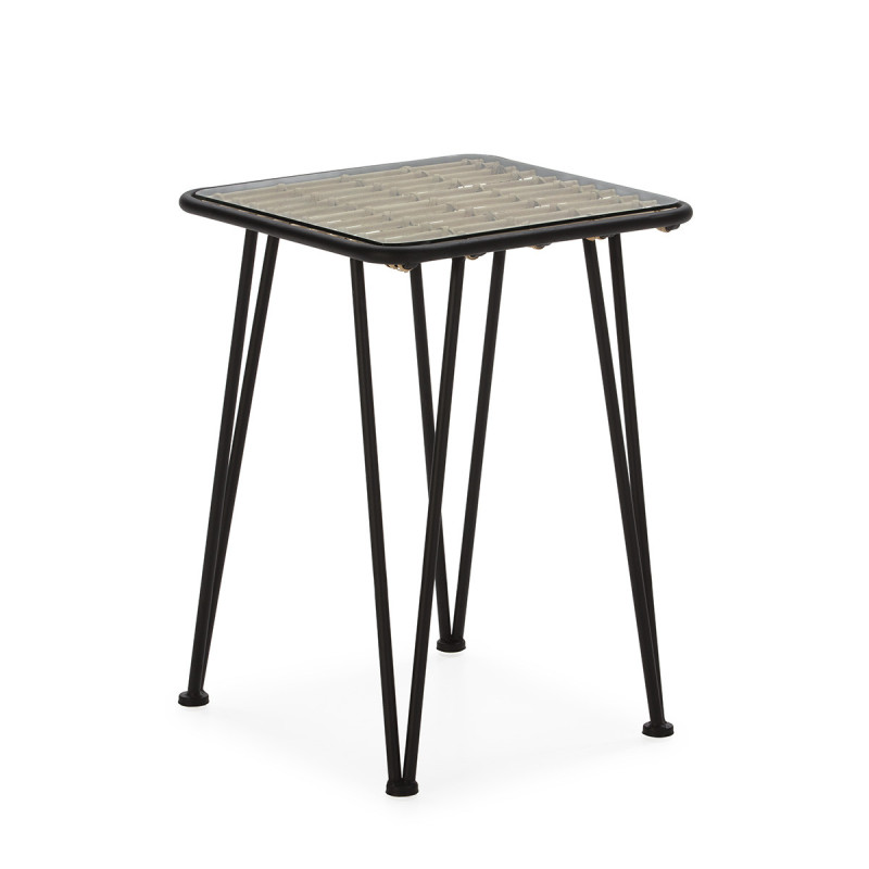 MESA AUXILIAR 41x41x57 CRISTAL/METAL NEGRO/RATAN NATURAL