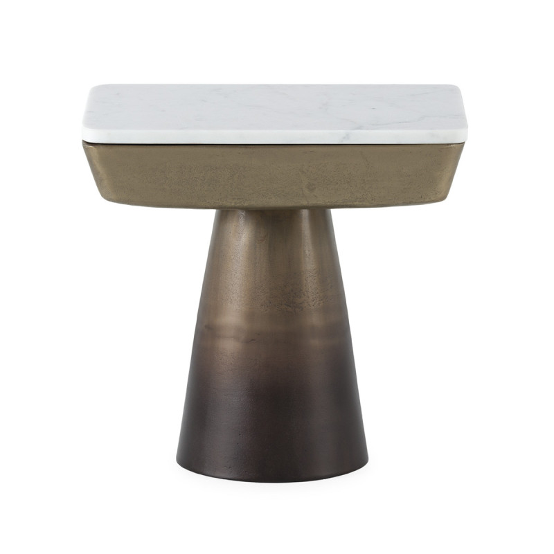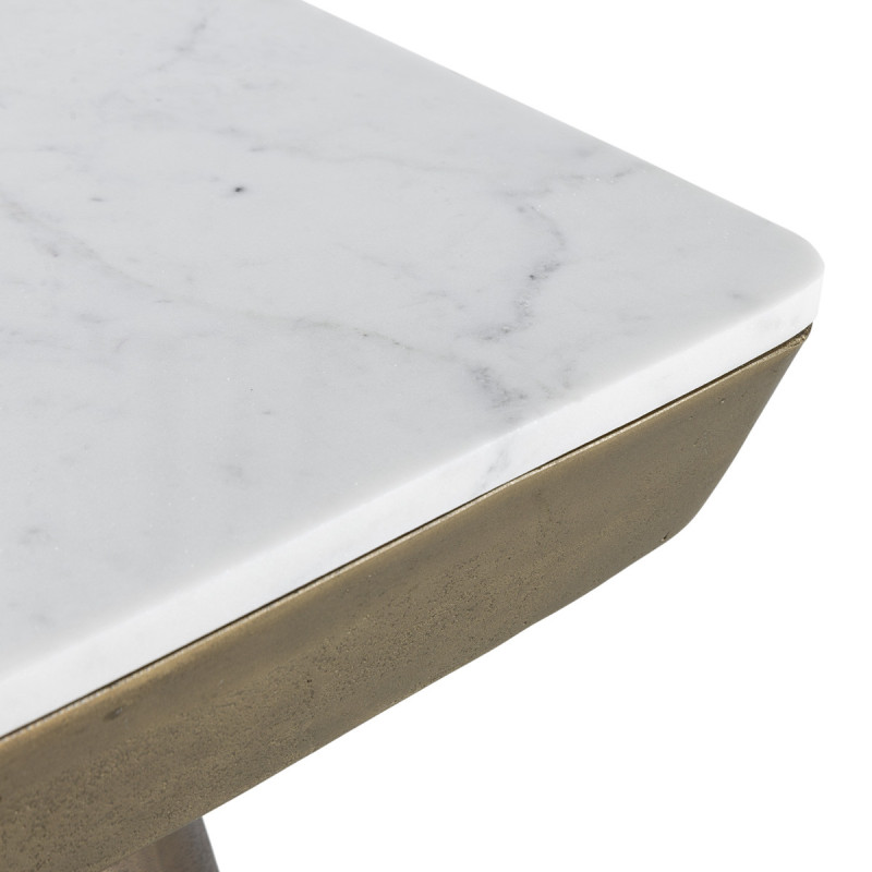MESA AUXILIAR 45x33x42 METAL DORADO ANTIQUE/MARMOL BLANCO