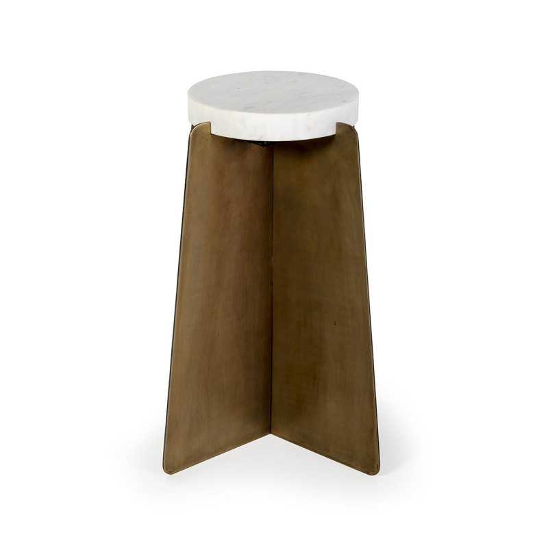 MESA AUXILIAR 45x45x57 METAL/MARMOL DORADO ANTIQUE/BLANCO