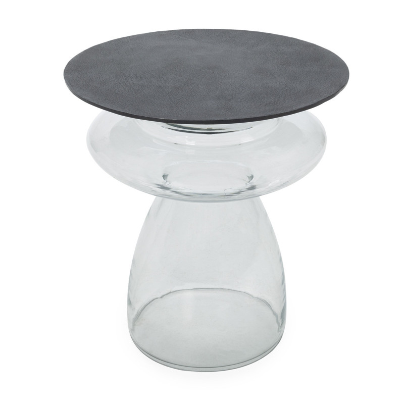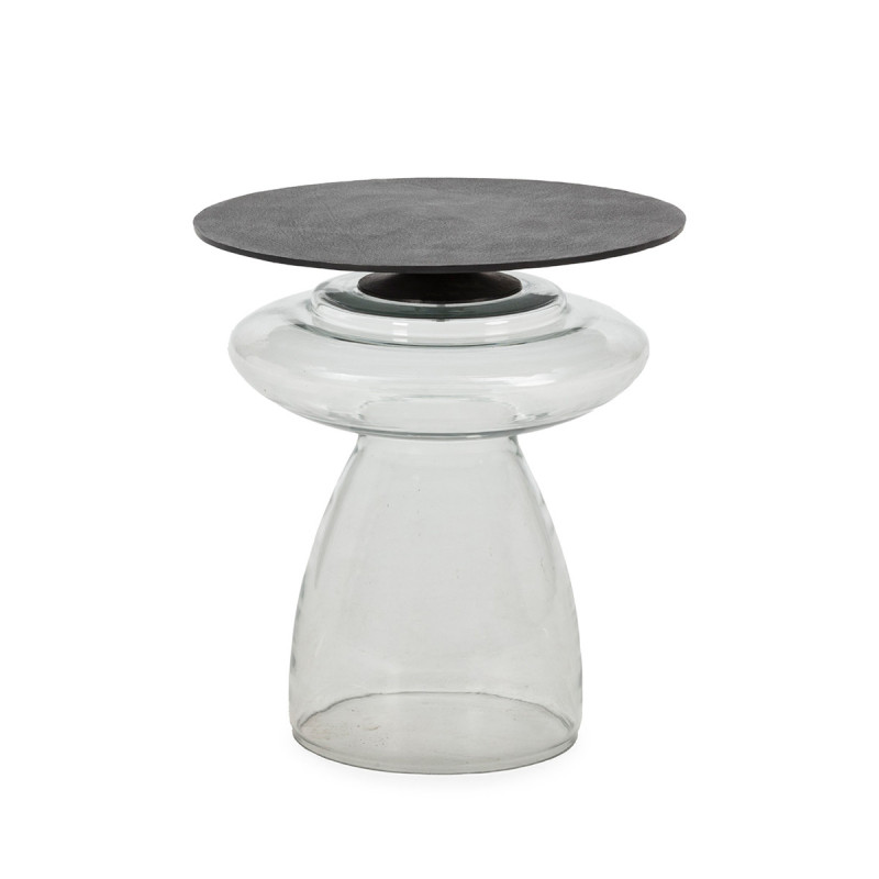 MESA AUXILIAR 47x47x52,5 METAL BRONCE OSCURO/CRISTAL TRANSPARENTE