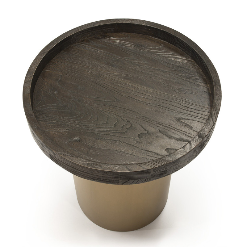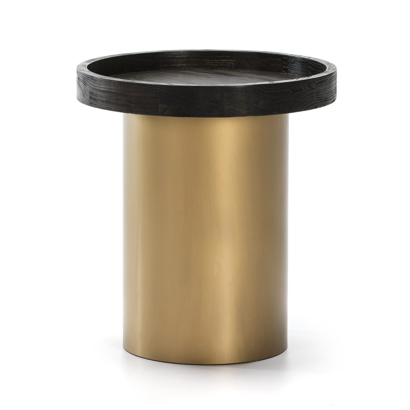 MESA AUXILIAR 50x50x55 MADERA MARRON OSCURO/METAL DORADO