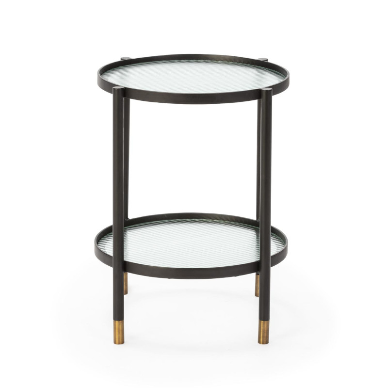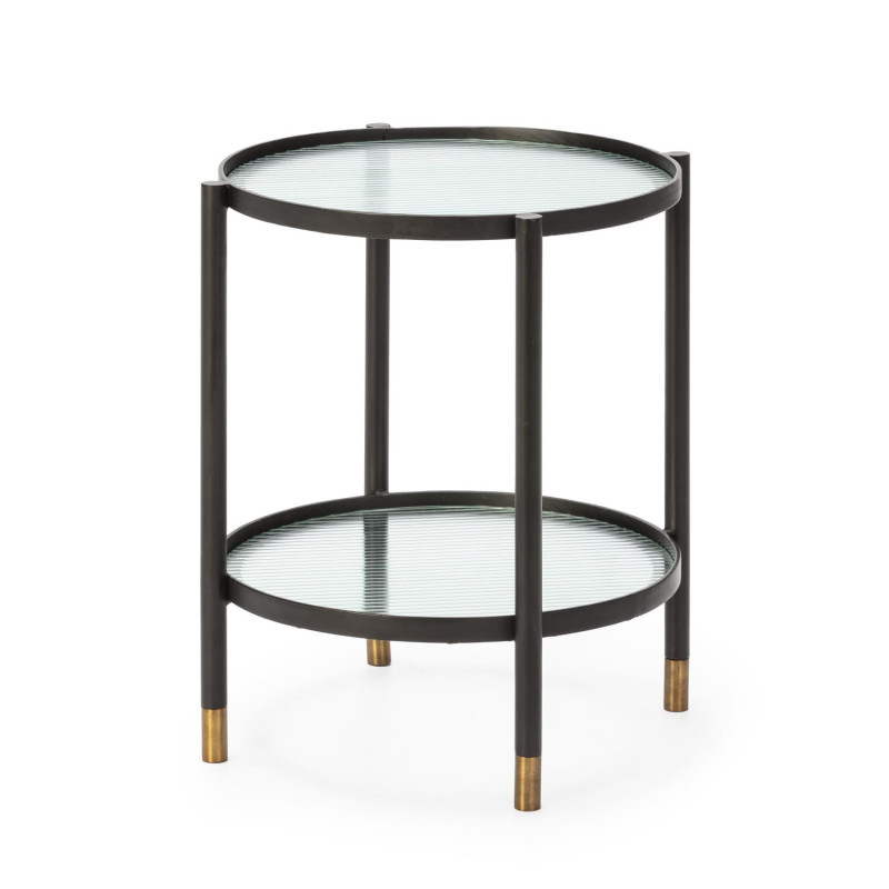 MESA AUXILIAR 51x51x56 METAL NEGRO/LATON VIEJO/CRISTAL
