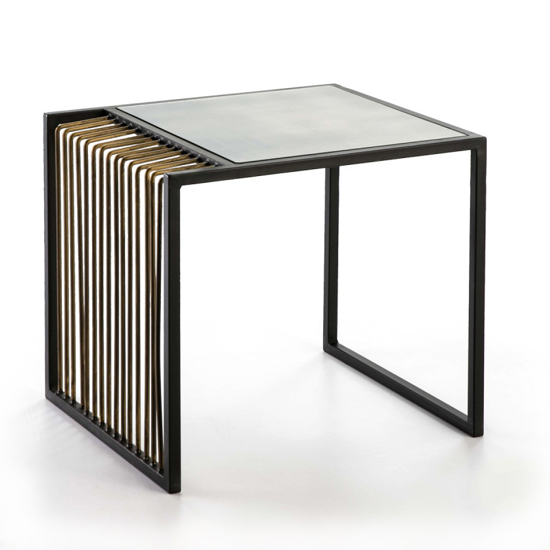 MESA AUXILIAR 56x48x51 ESPEJO ENVEJECIDO/METAL DORADO/NEGRO