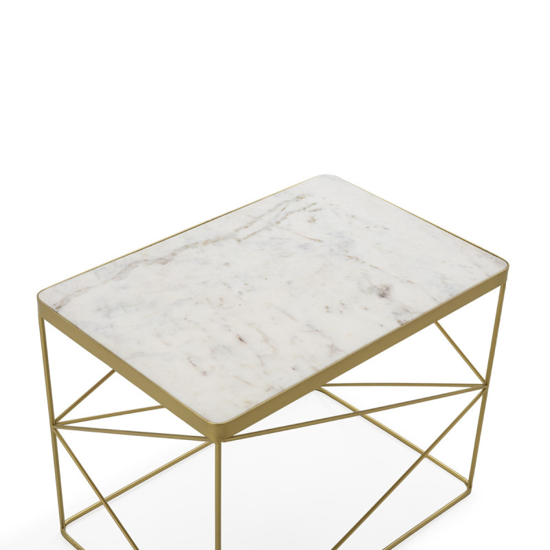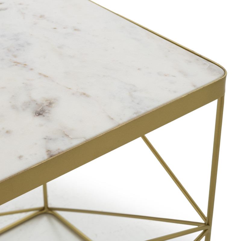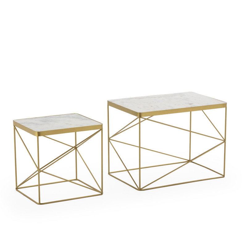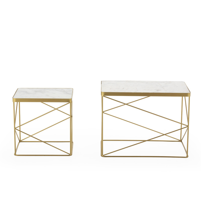MESA AUXILIAR SET/2 24x16,5x18/16x14,5x16 METAL DORADO/MARMOL BLANCO