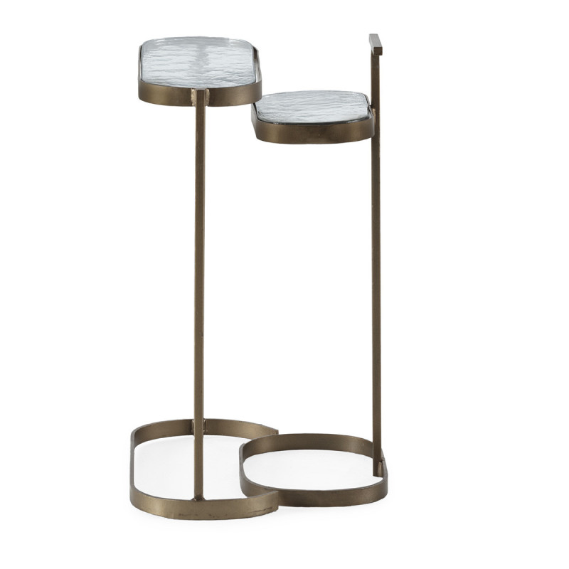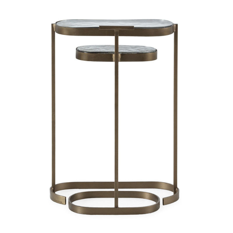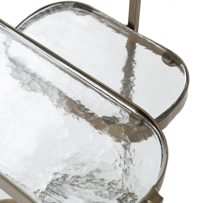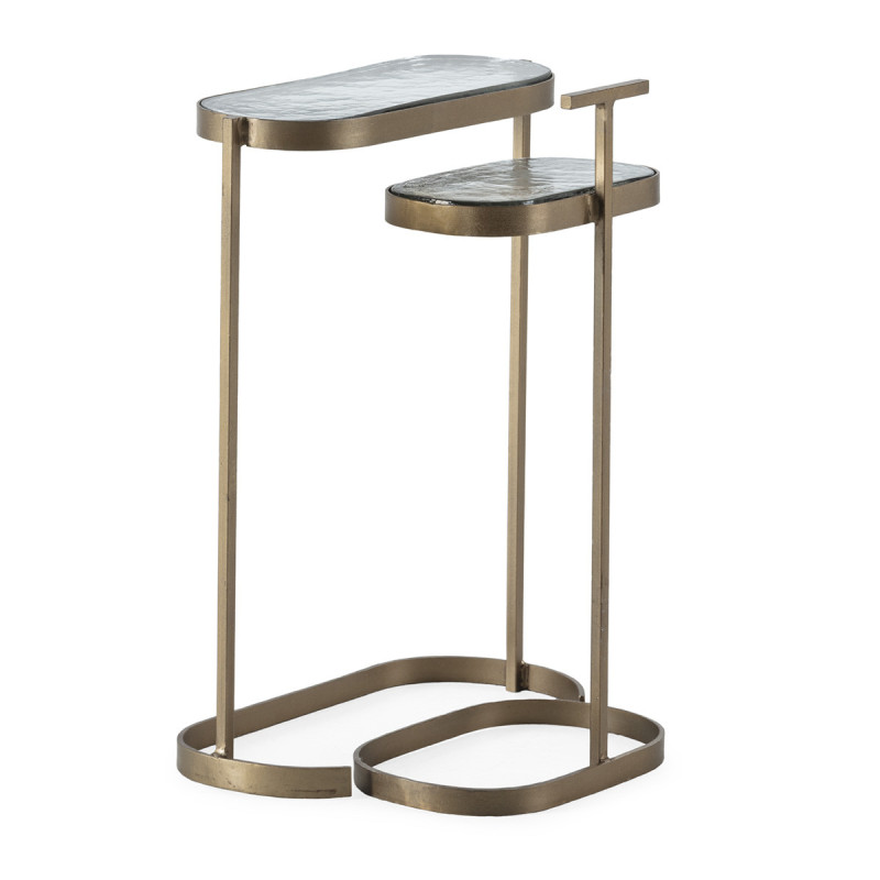MESA AUXILIAR SET/2 41x19x58 / 28x19x60 CRISTAL RUSTICO/METAL DORADO ANTIC