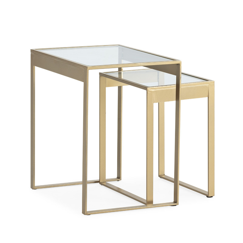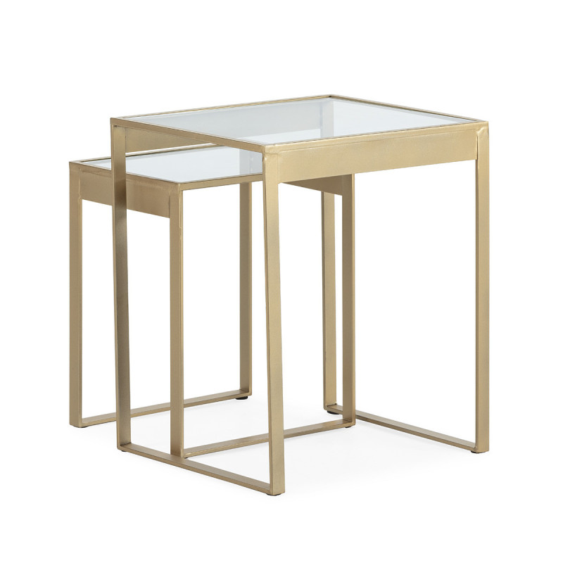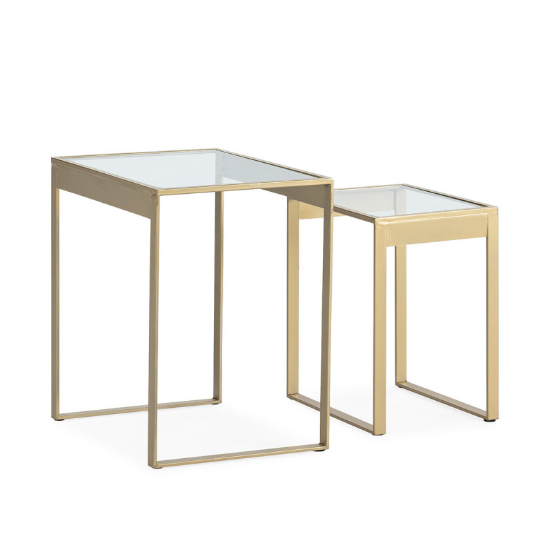 MESA AUXILIAR SET/2 50x40x56/40x30x46 METAL DORADO/CRISTAL