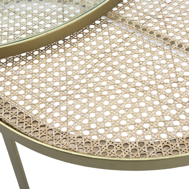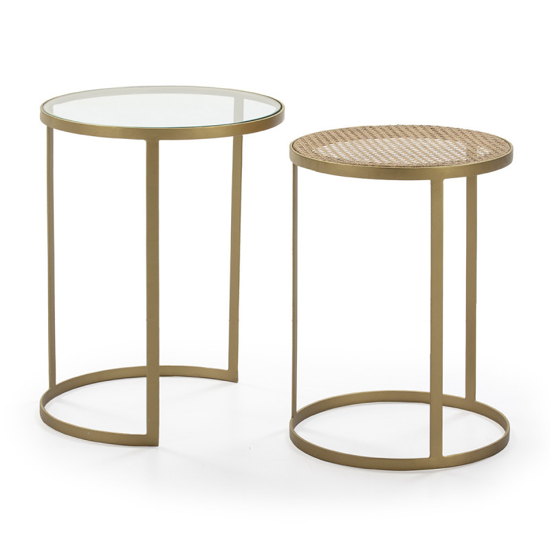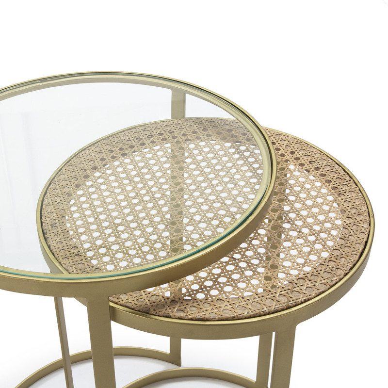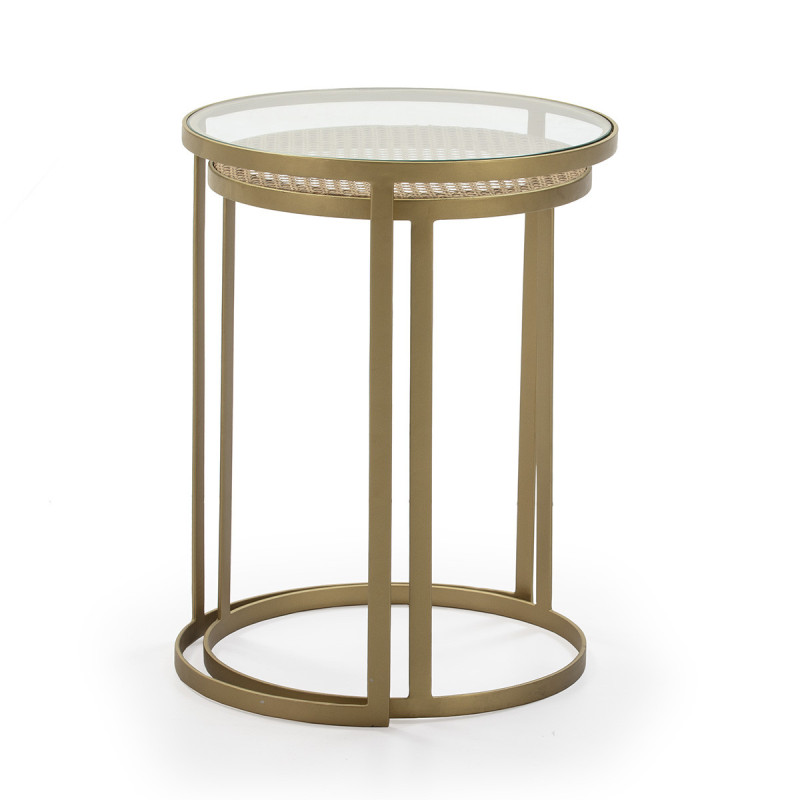MESA AUXILIAR SET/2 50x50x65 CRISTAL/RATAN/METAL DORADO