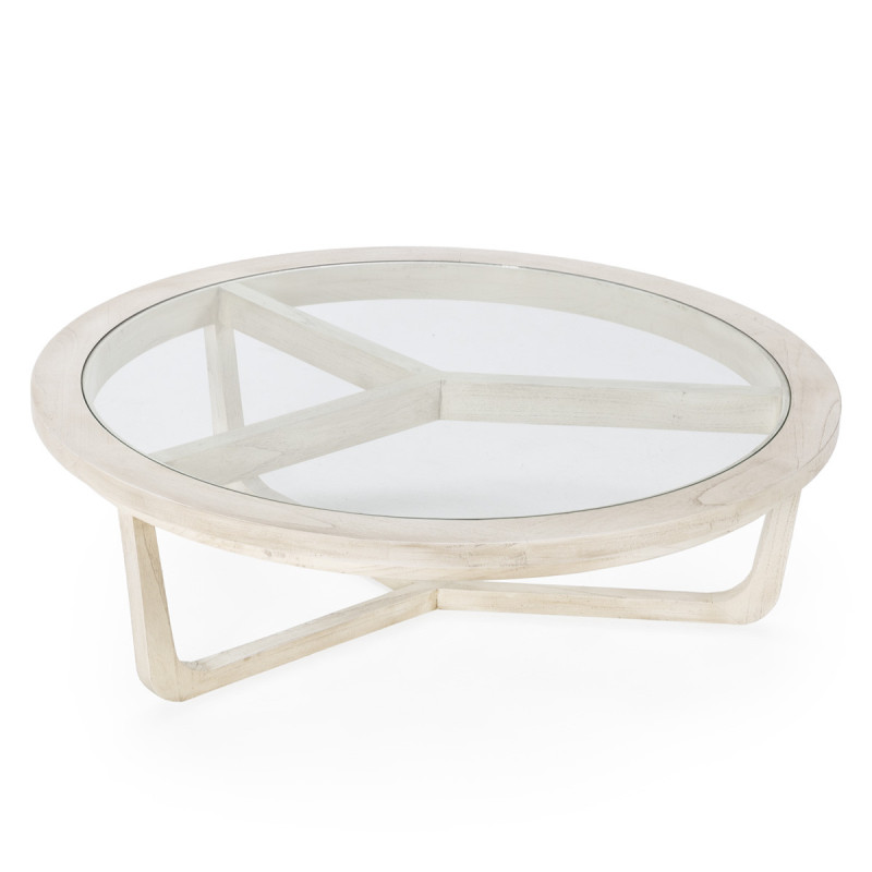 MESA DE CENTRO 100x100x32 MADERA BLANCO VELADO/CRISTAL