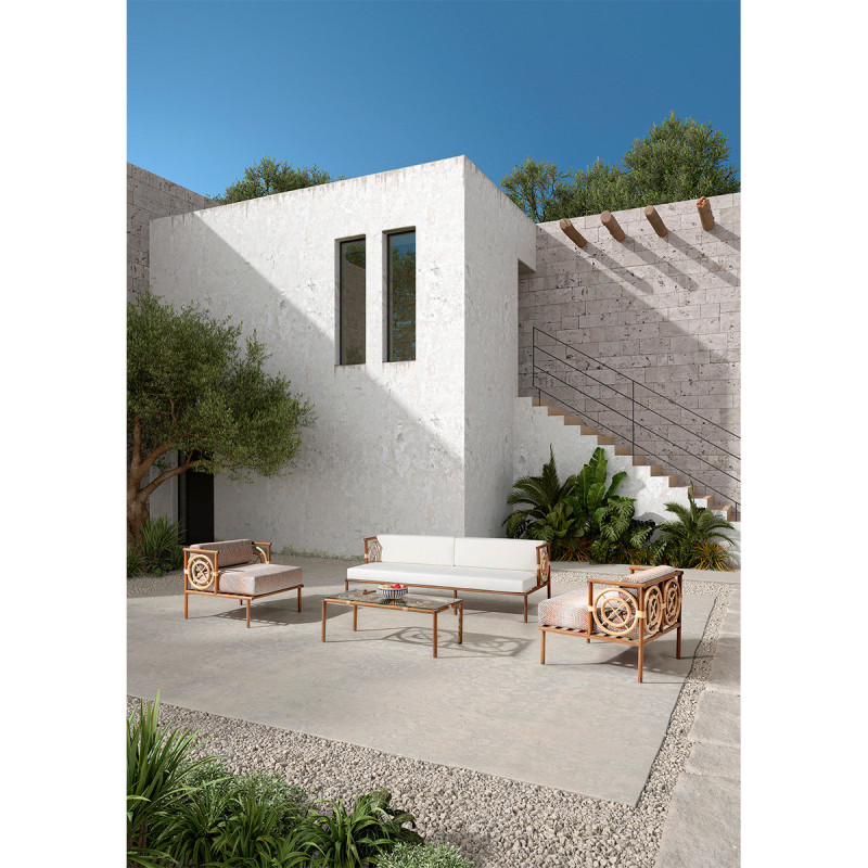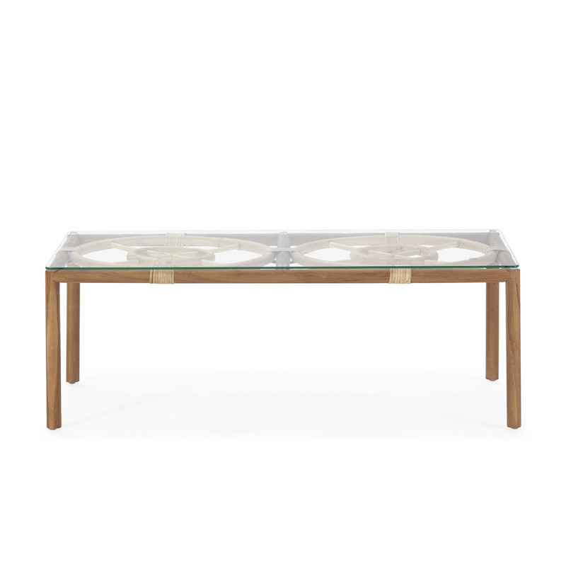 MESA DE CENTRO 100x50x35 MADERA DE TECA/RATAN/CRISTAL TEMPLADO