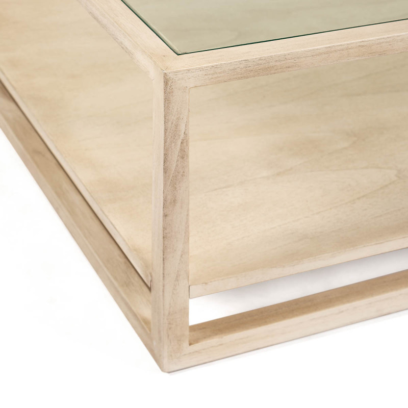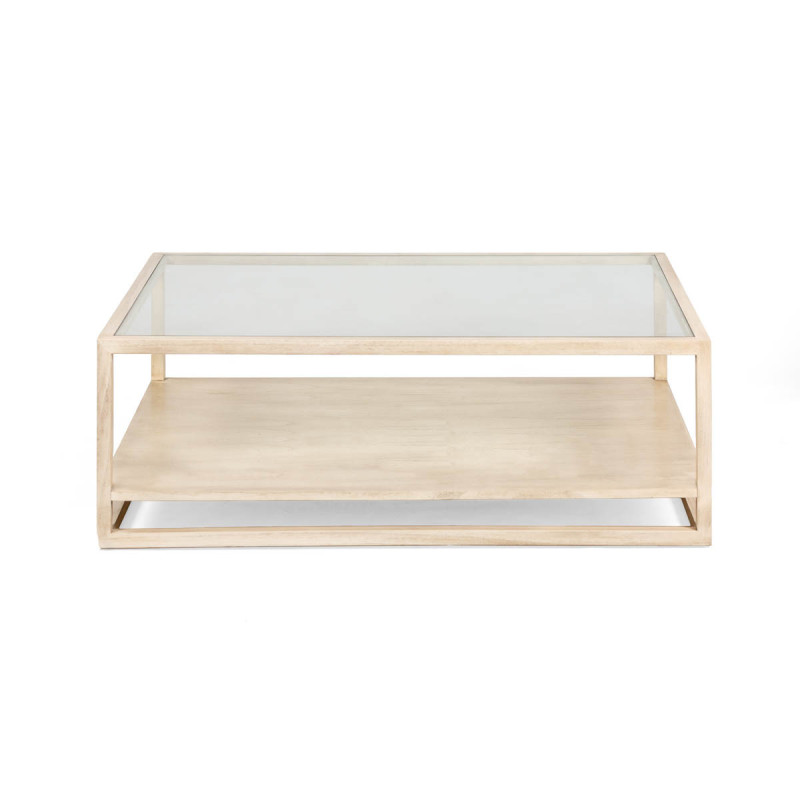 MESA DE CENTRO 120x90x40 CRISTAL/MADERA BLANCO VELADO