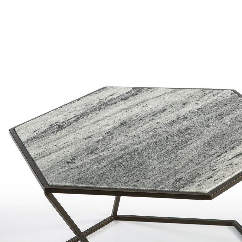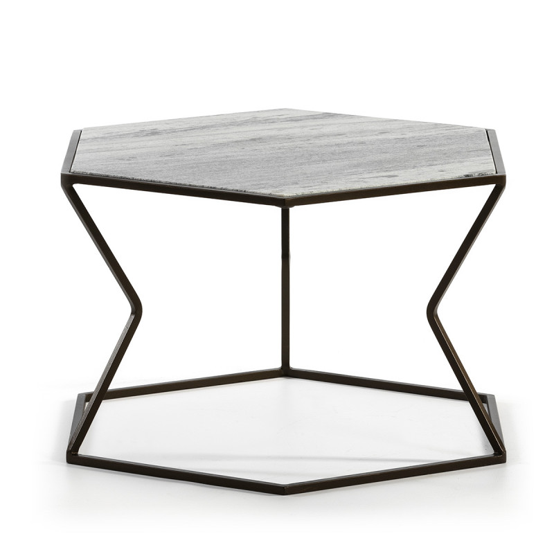 MESA DE CENTRO 61x61x41 MARMOL CLARO/METAL MARRON OSCURO