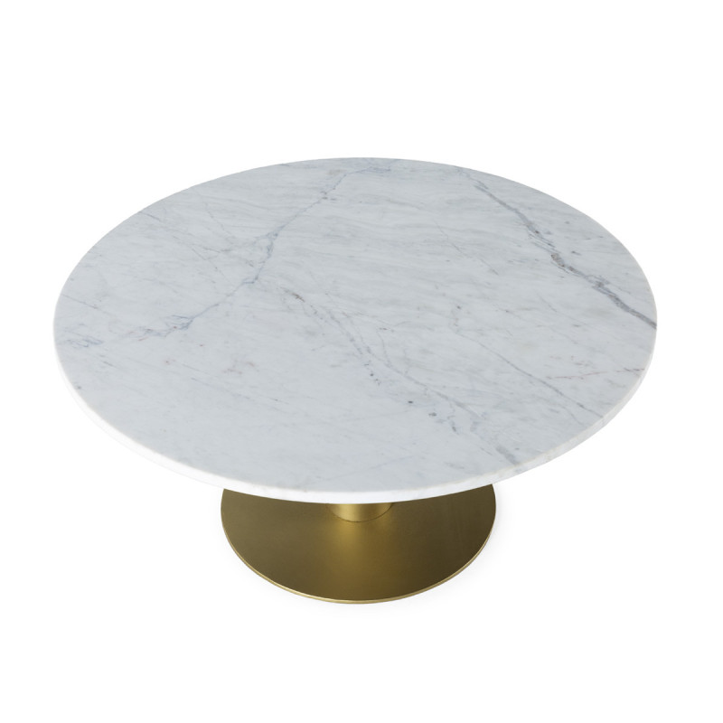 MESA DE CENTRO 90x90x40 METAL DORADO/MARMOL BLANCO
