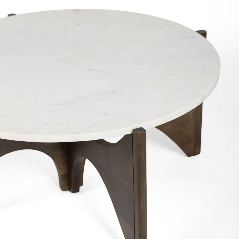 MESA DE CENTRO 92x92x44 MADERA MARRON/MARMOL BLANCO