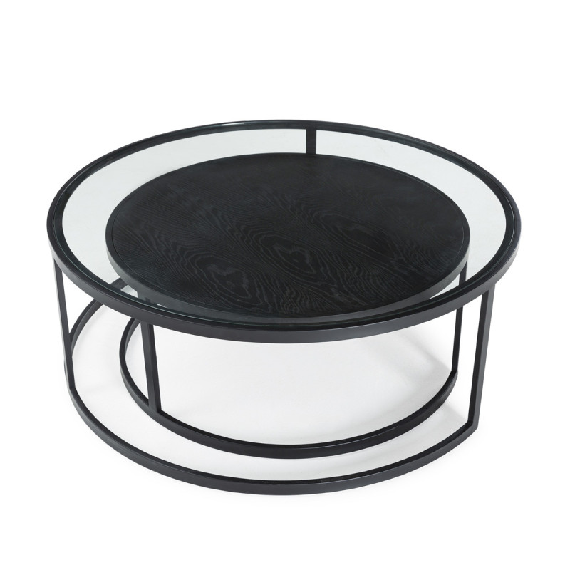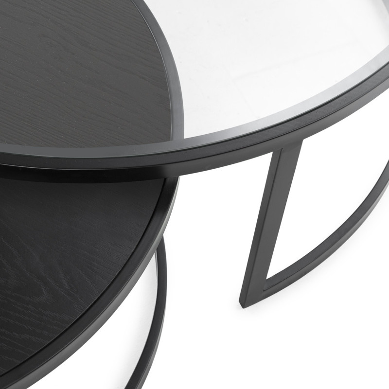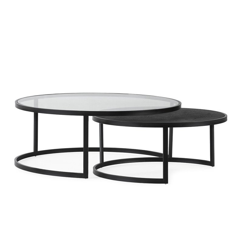MESA DE CENTRO SET/2 110x100x42/85,5x85,5x37,5 CRISTAL TEMPLADO/MADERA/METAL NEGRO
