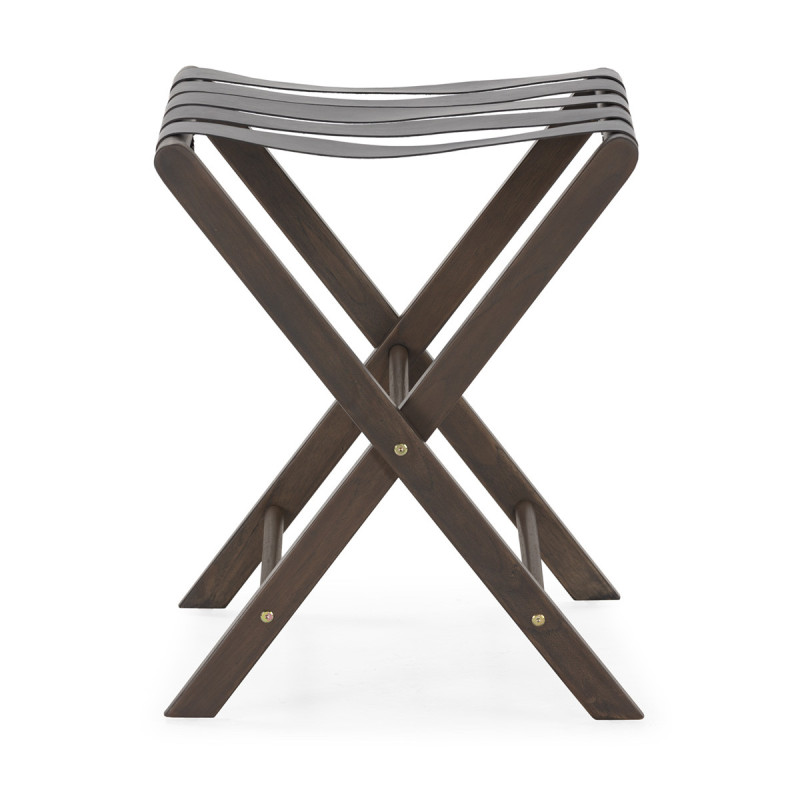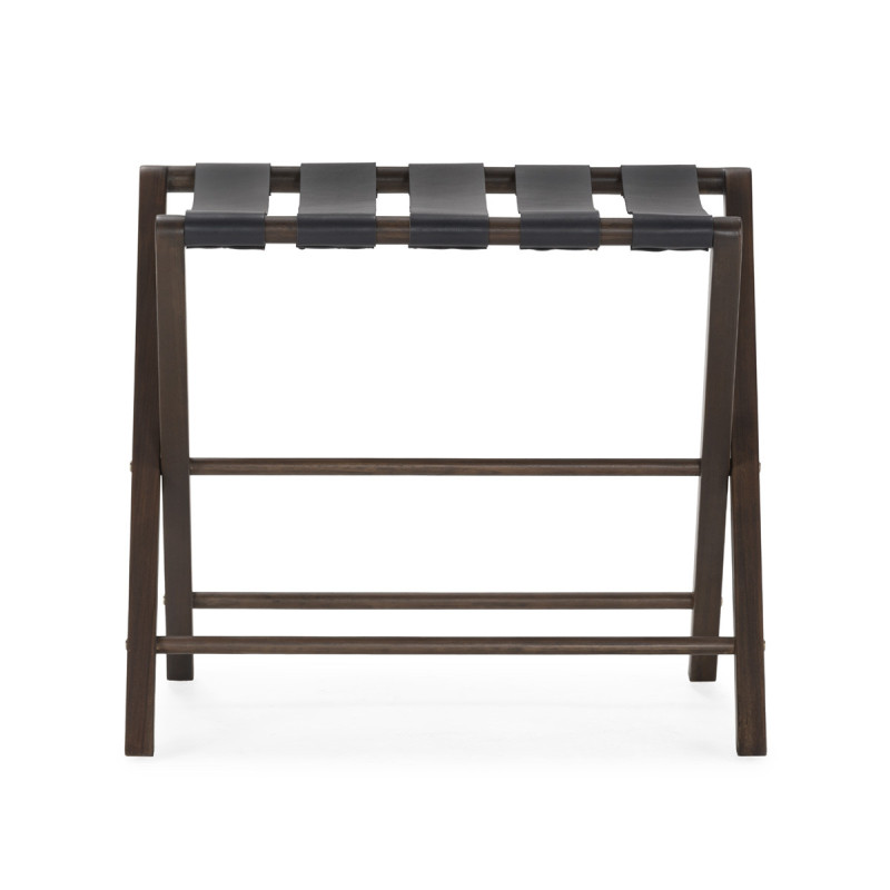 PORTAMALETAS 66x46x55,9 MADERA DE TECA NATURAL/CUERO NEGRO