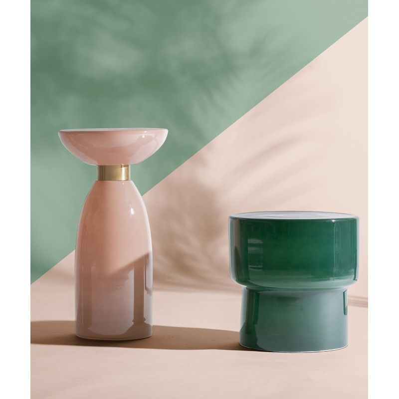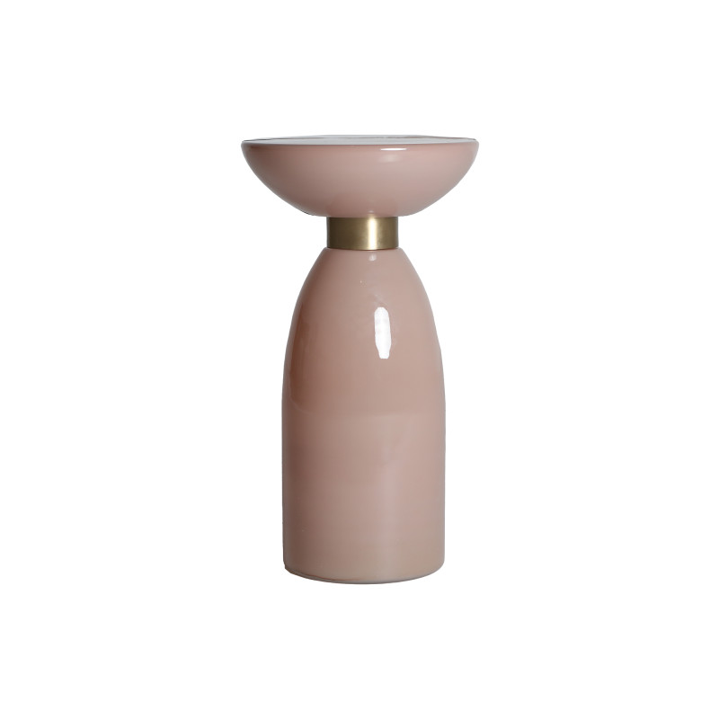 Mesa auxiliar Bellano de estilo contemporaneo, fabricado en vidrio en color rosa palo con acabado brillo en color dorado.