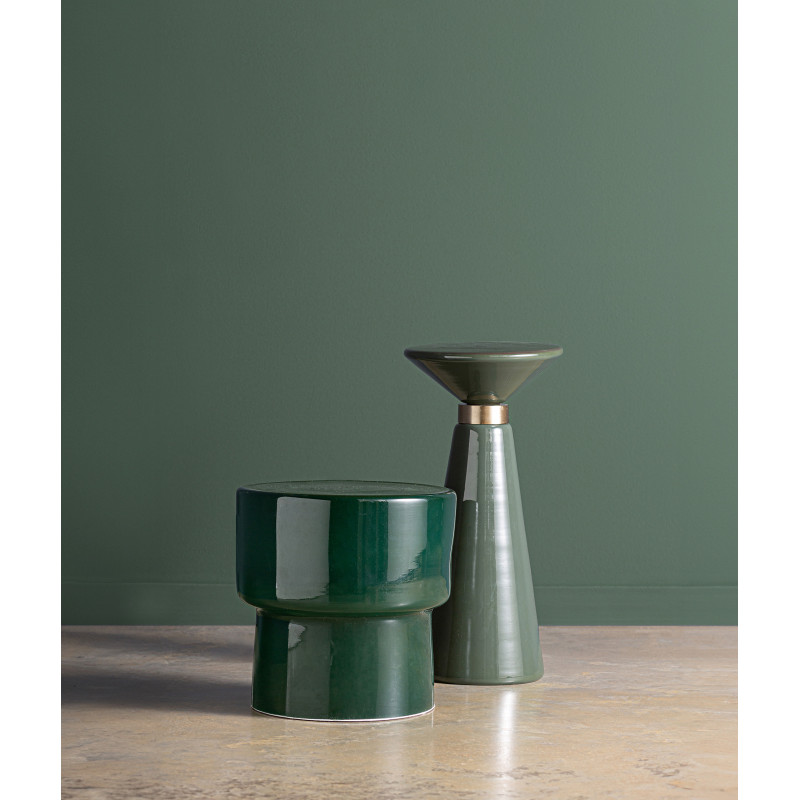 Mesa auxiliar Cassis de estilo contemporaneo, fabricado en vidrio en color verde con acabado brillo en color dorado.