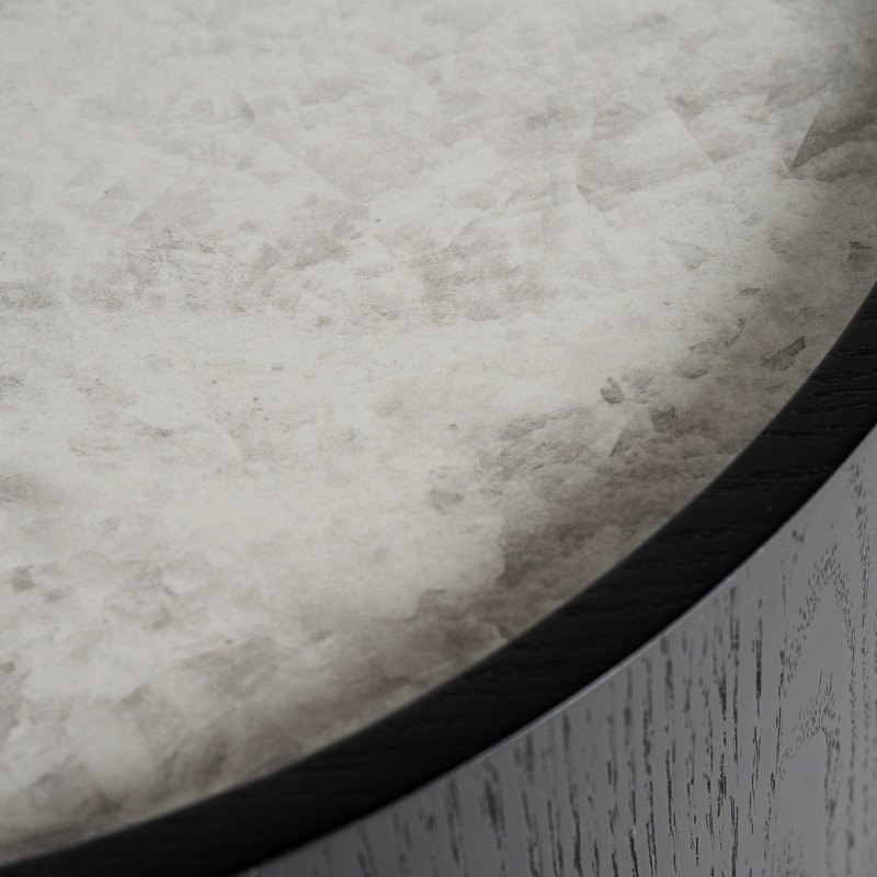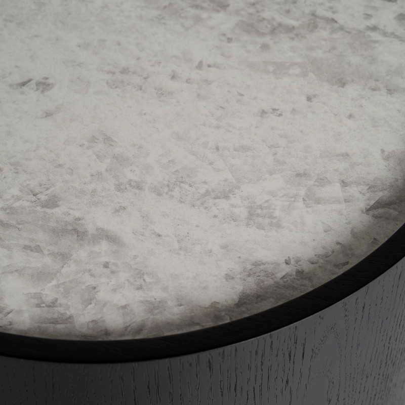 Mesa auxiliar breil de estilo art deco fabricado en madera roble en color negro combinado con ceramica en color blanco.