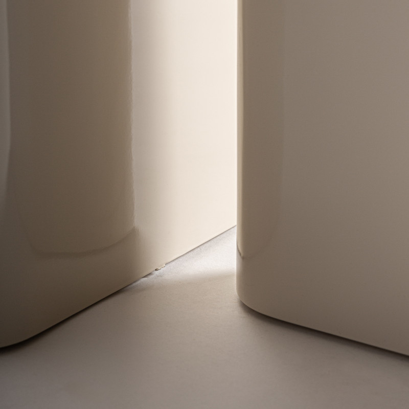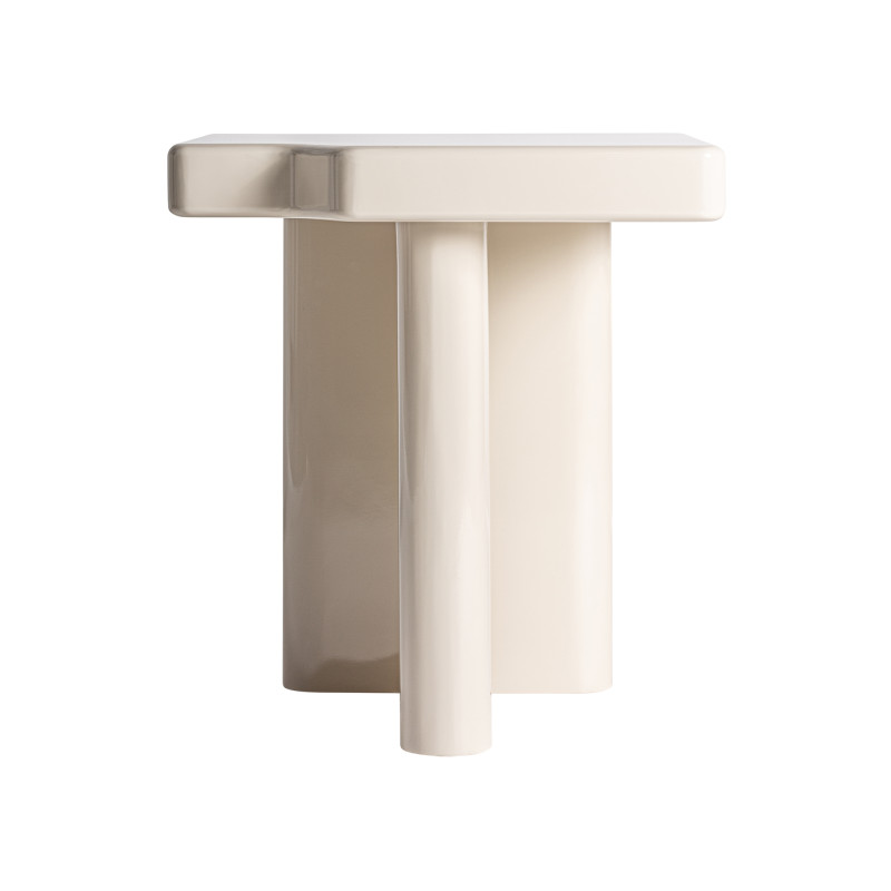 Mesa auxiliar suhi de estilo art deco fabricado en madera dm en color blanco roto con acabado brillo.