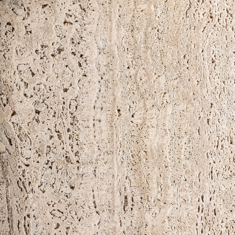 Mesa auxiliar theuville de estilo art deco fabricado en travertino en color beige.