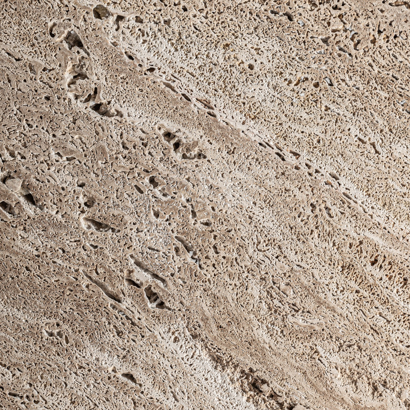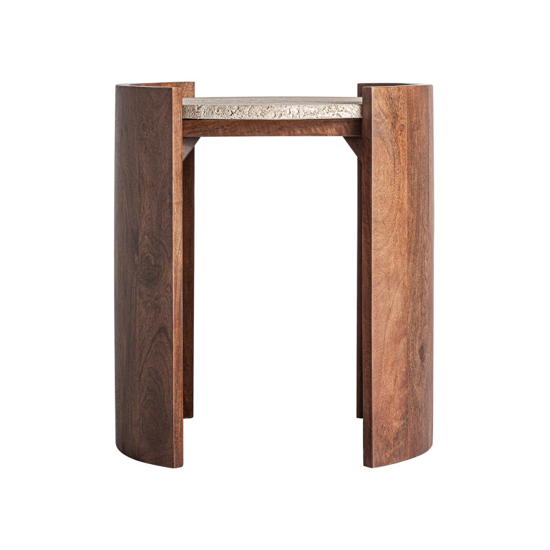 Mesa auxiliar Tivoli de estilo contemporaneo fabricado en travertino en color beige combinado con madera de mango en color marron. Producto desmontable.