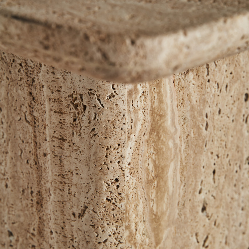Mesa de centro fimland en color beige de estilo art deco. Fabricado en travertino. Producto desmontable.