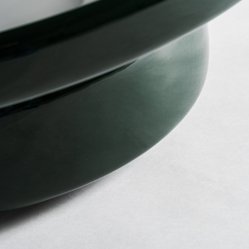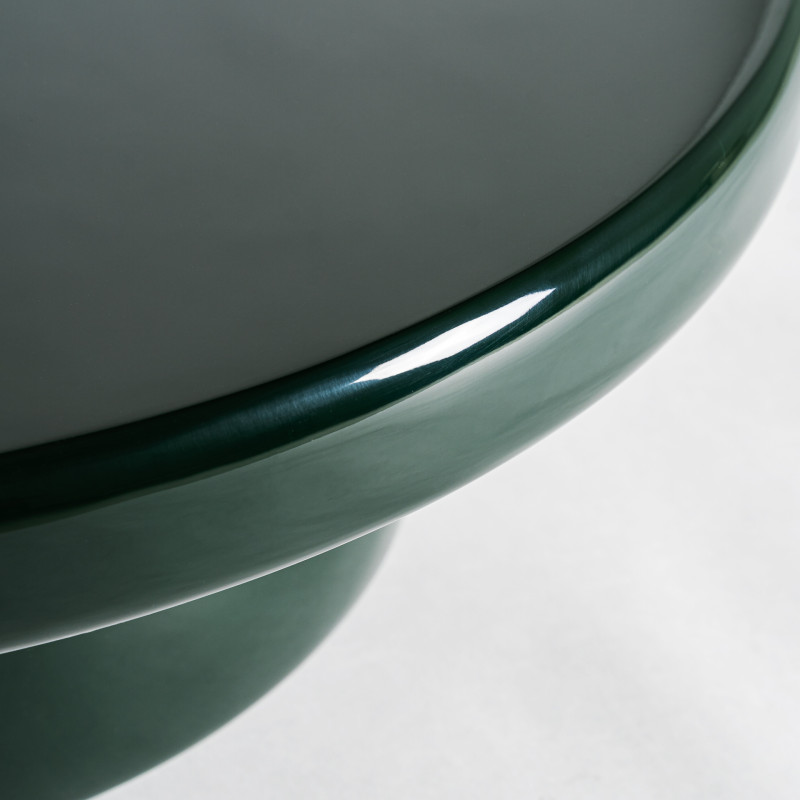 Mesa de centro gory de estilo contemporaneo fabricado en madera dm en color verde con acabado brillo combinado con fibra de vidrio en color verde. Producto desmontable.