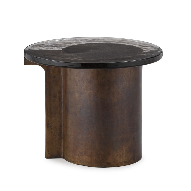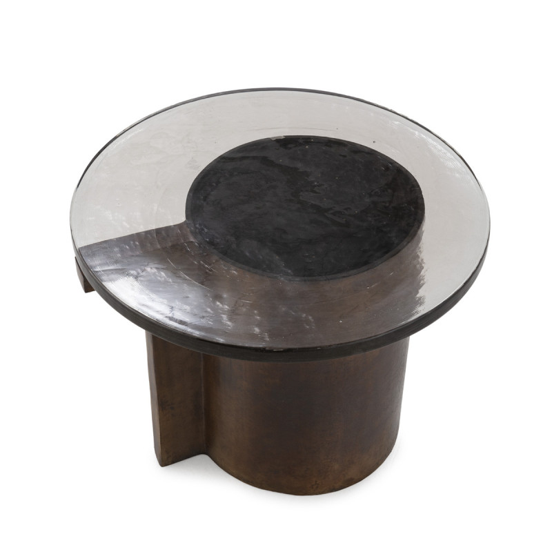 MESA AUXILIAR 53x53x42 METAL LATON AL OLEO/CRISTAL