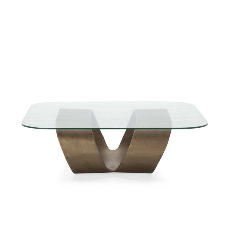 MESA DE CENTRO 115x115x35 METAL LATON ANTIQUE/CRISTAL