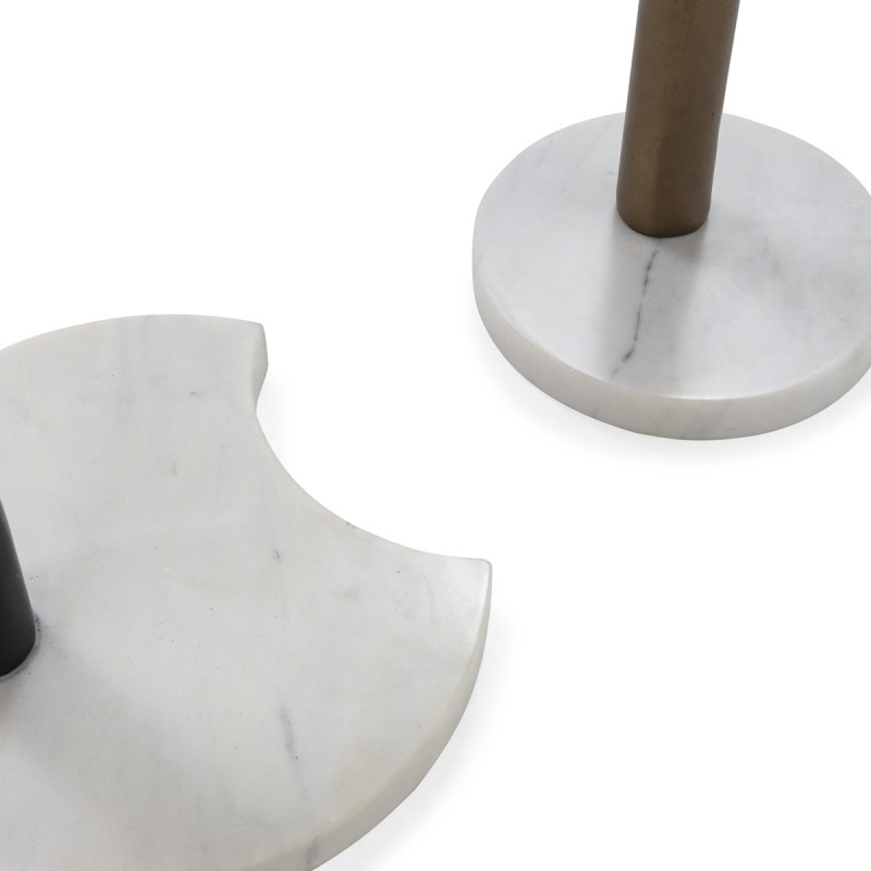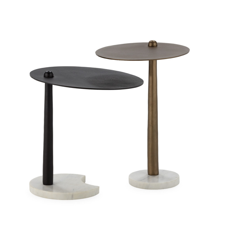 SET/2 MESA AUXILIAR 46x46x59/38x38x49 METAL BRONCE/LATON ANTIGUO/MARMOL BLANCO