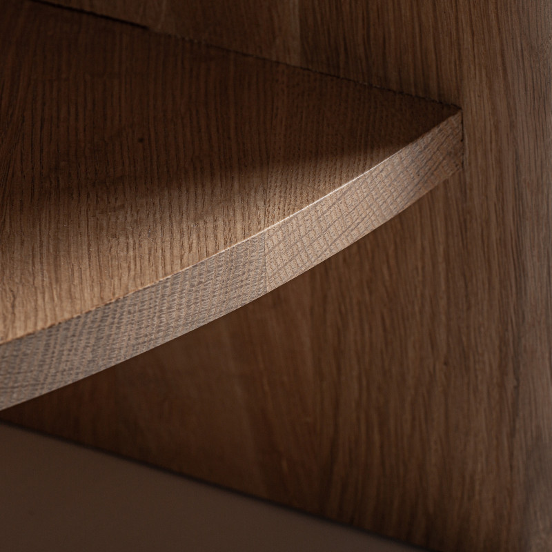 Mesa Auxiliar Nara de estilo Contemporaneo Fabricado en Madera Roble en Color Marron Combinado Con Travertino en Color Negro. Producto desmontable.