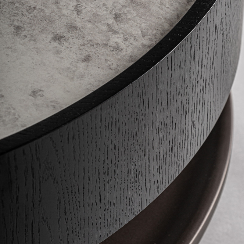 Mesa de Centro Breil de estilo Art deco. Fabricado en Madera Contrachapada en Color Marron Combinado Con Marmol en Color Blanco.