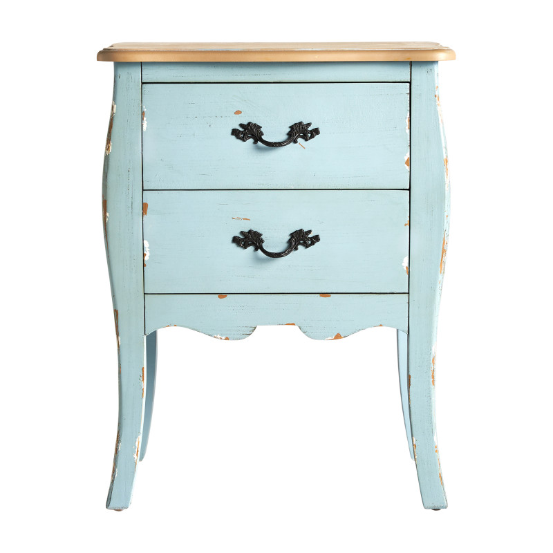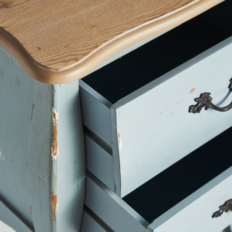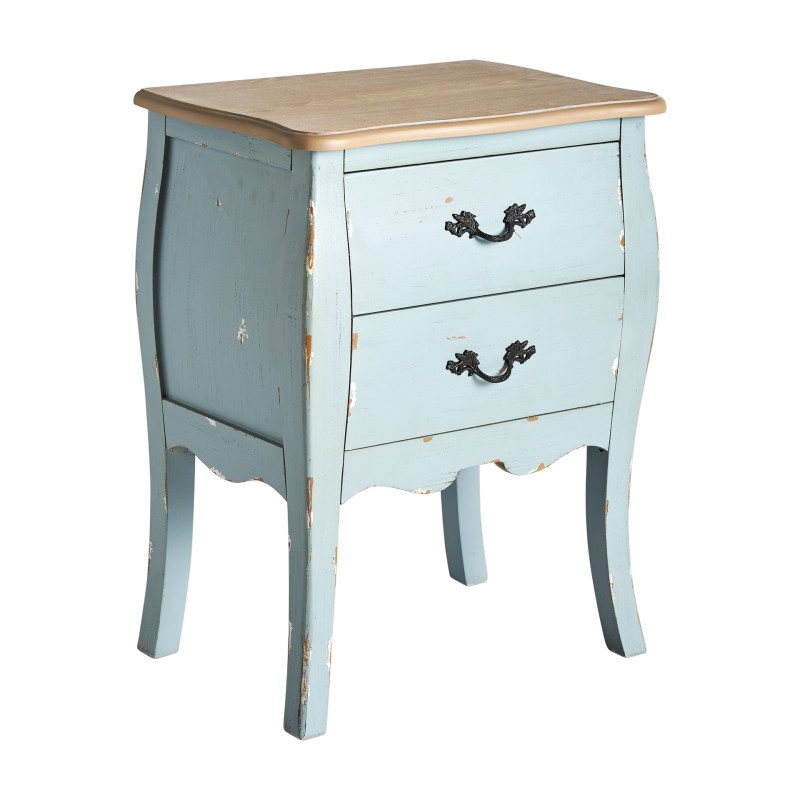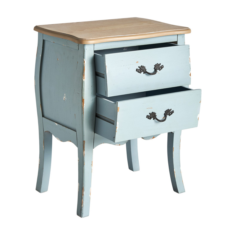 Mesita venecia, en color azul/natural, de estilo shabby chic. Fabricado en madera de abeto, combinado con madera dm.